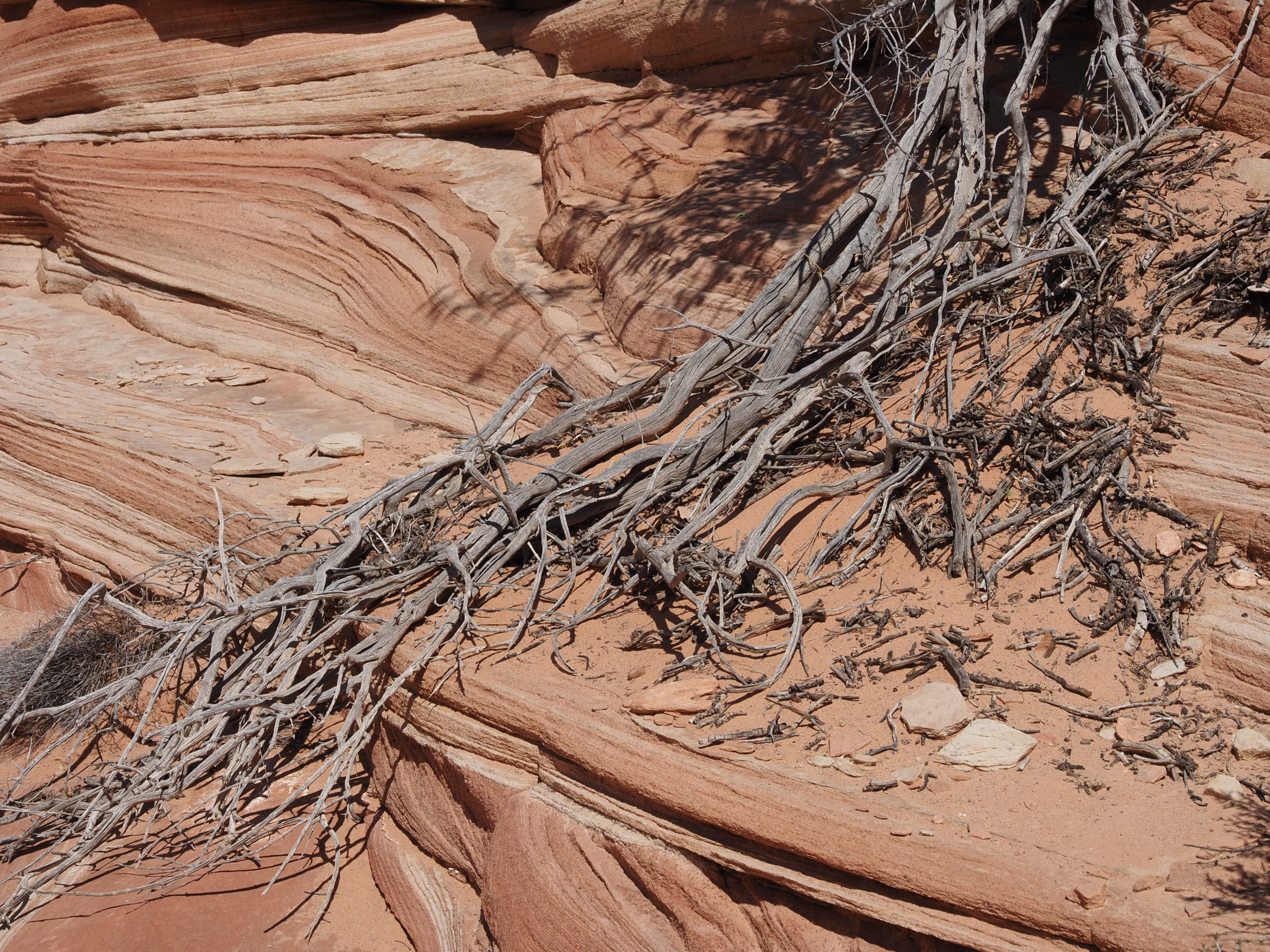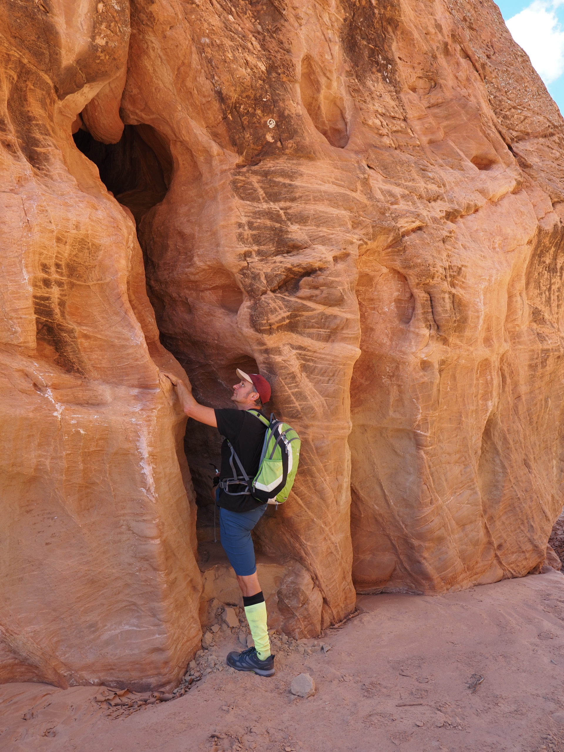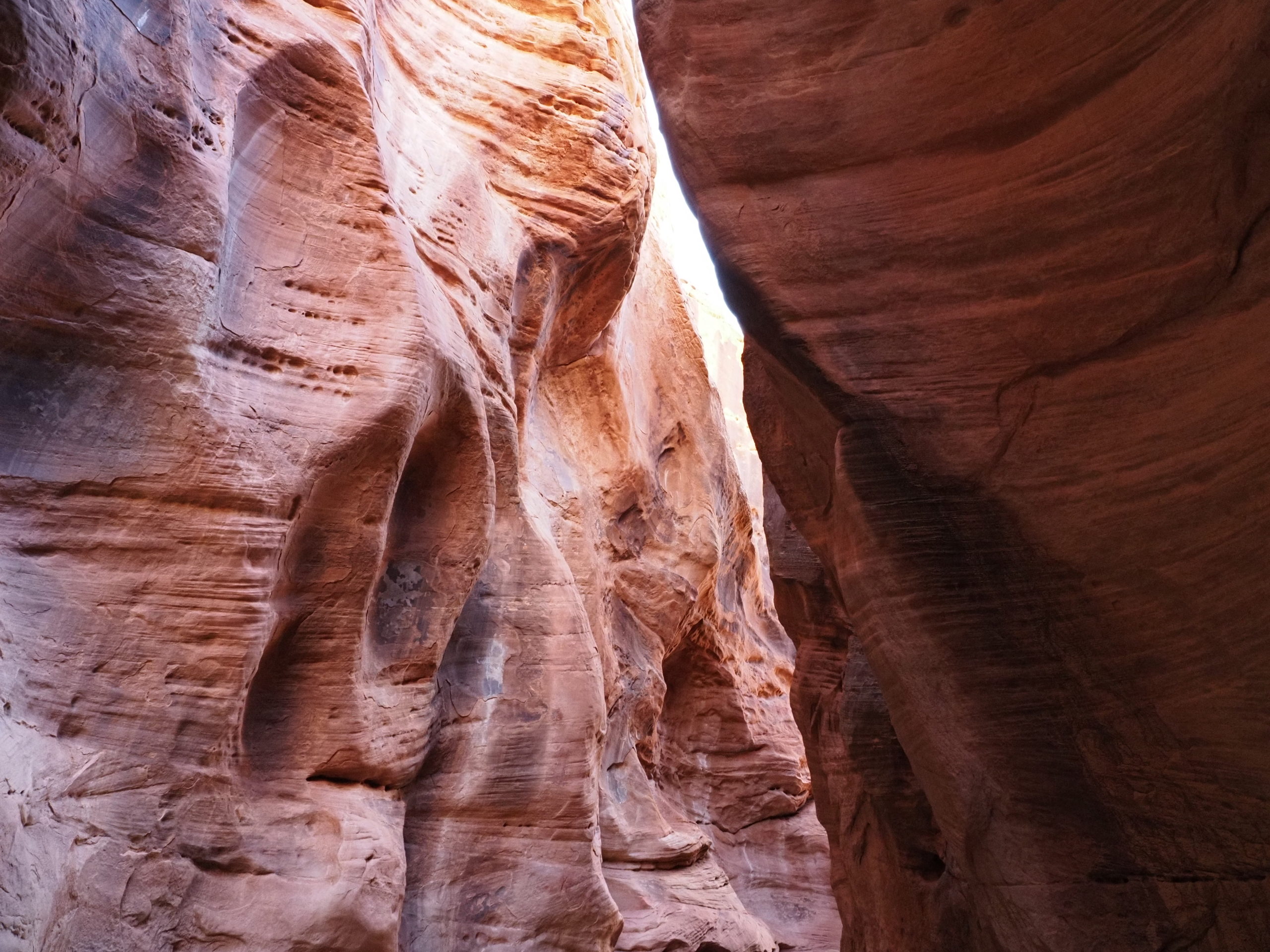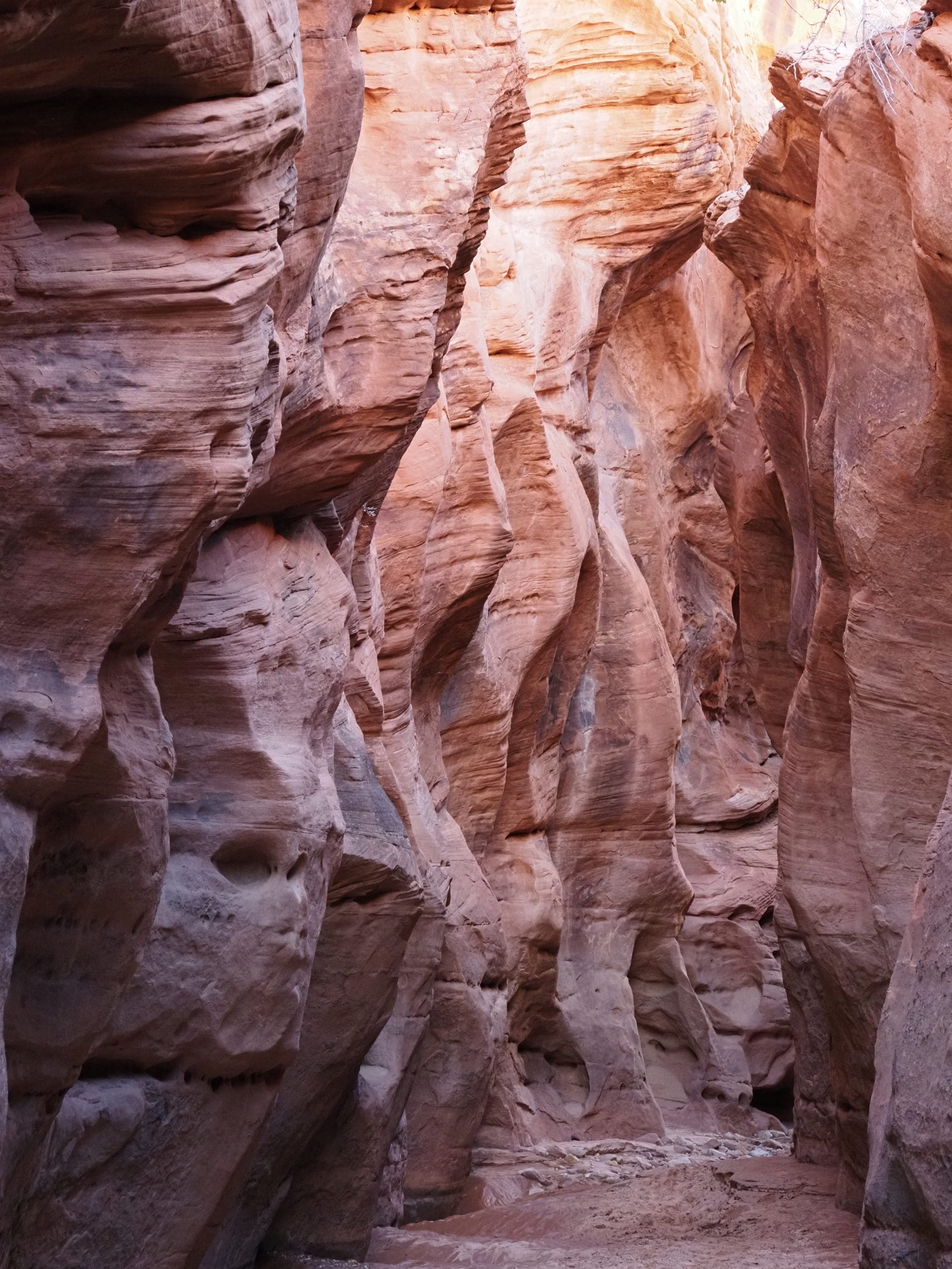 Am zweiten Tag machen wir uns auf zu einem sogenannten Slot Canyon. Für diese engen Schluchten ist diese Gegend hier gekannt und wie es die Übersetzung des Wortes Slot schon andeutet handelt es sich um eine wirklich enge Schlucht. Die meisten dieser Art sind nur mit Führung zu betreten (teuer!), wenn man aber bereit ist einen längeren Fußmarsch auf sich zu nehmen, dann kann man z.B. den Buckskinn Gulch (fast) umsonst haben und muss ihn nur mit ganz wenigen anderen teilen. Tatsächlich haben wir nur eine Familie und drei weitere Personen im Laufe von fünf Stunden getroffen. Dabei sind wir 15 km gewandert.