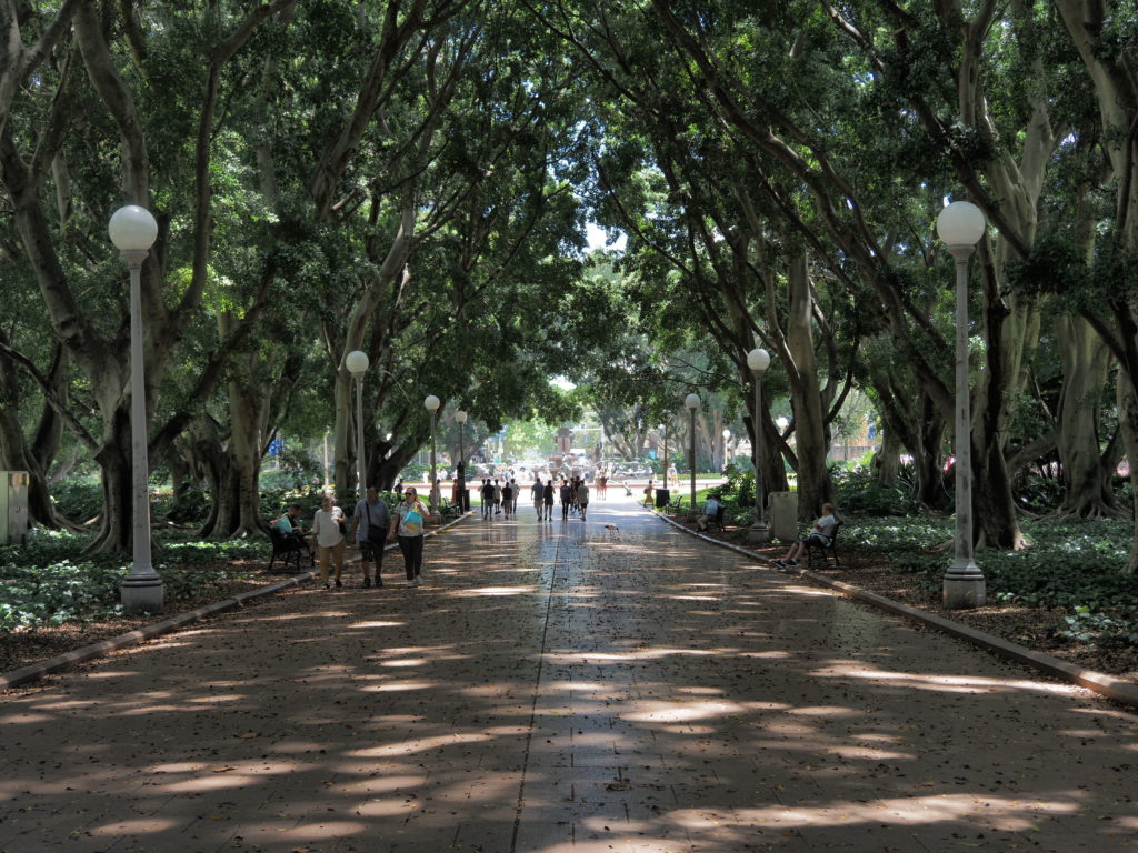 Der Hyde Park in Sydney ist klein aber fein, verglichen mit seinem großen Bruder in London. Aber im Sommer ein wunderschöner Ort inmitten des Großstadtdschungels.
