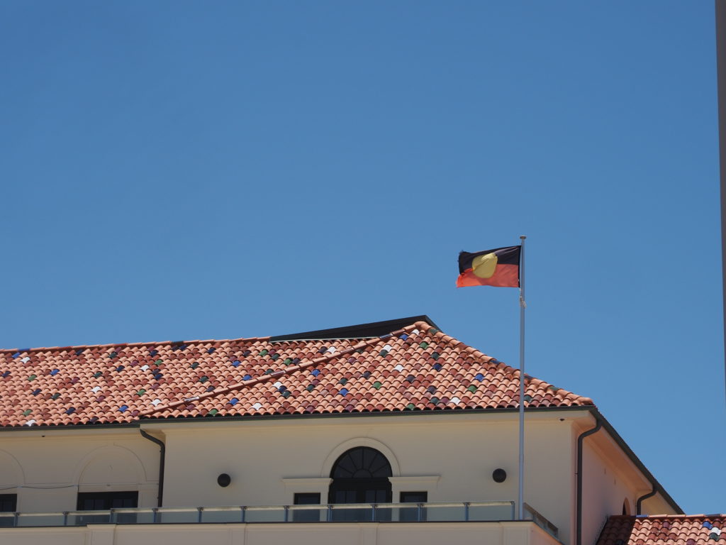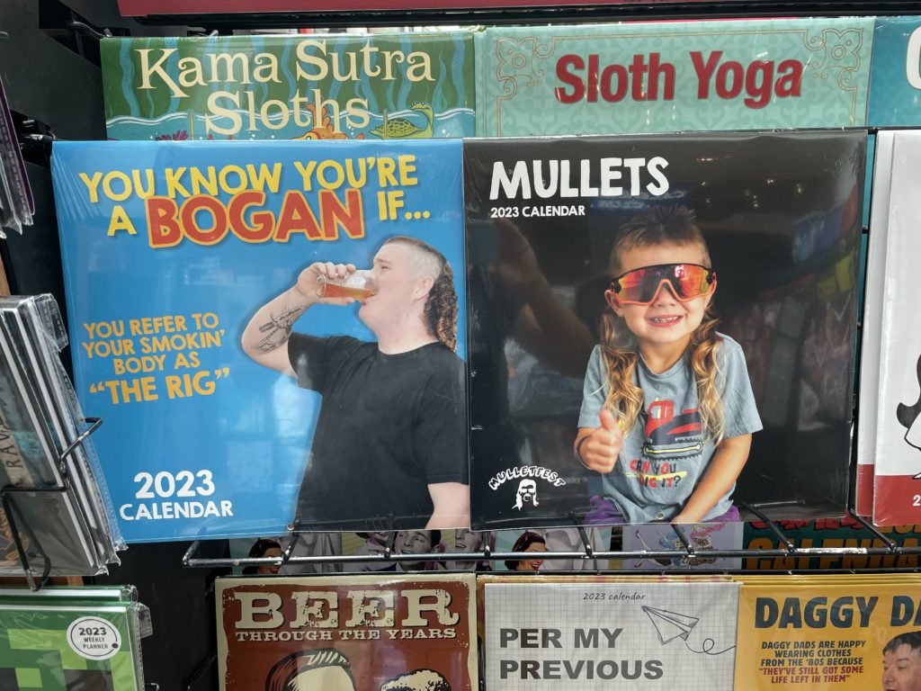 Und zum Abschluss noch ein bisschen Neues, denn auch wenn wir nun schon zum dritten Mal in Australien sind, dieses Land verändert sich – natürlich! Den Bogan, den australischen Begriff für den Hinterwäldler, habe ich ja schon im vorherigen Beitrag erklärt. Der Mullet, dieser unsägliche Haarschnitt aus den Achtzigern mit vorne kurz und hinten lang, ist gerade voll en vogue hier und wird irgendwie als australisches Feeling gefeiert. Und dann hat uns noch erstaunt, dass wir neben der australischen Flagge meist auch die Flagge der Aborigines gesehen haben: rot und schwarz mit einem gelben Kreis in der Mitte. Die Australier sind auf einem guten Weg sich eine ganz eigene Kultur zu geben. Vor 30 Jahren waren sie noch total auf USA fixiert.