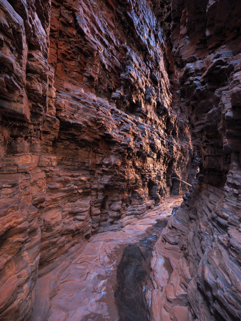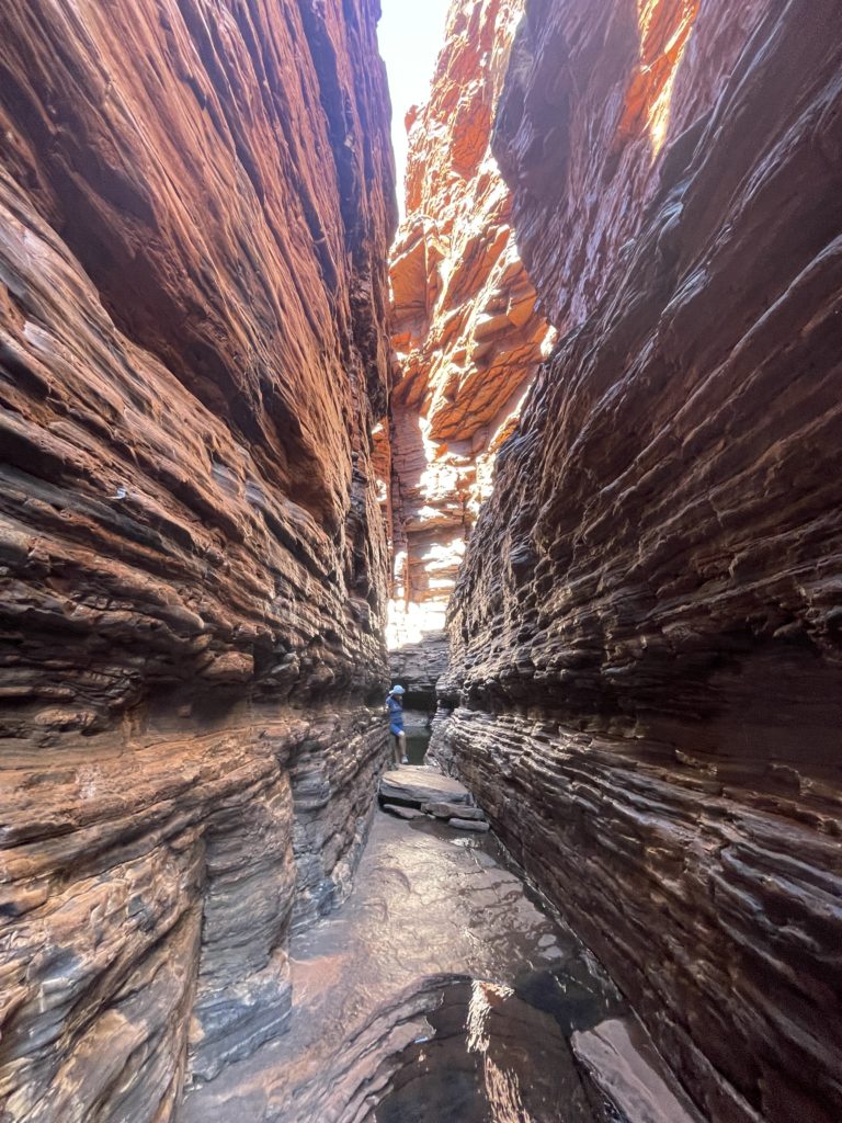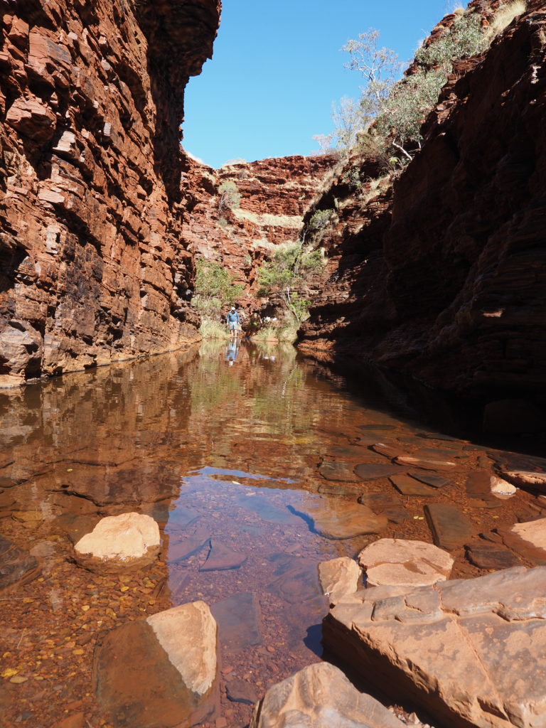 Hancock Gorge: Wer durch diese Schlucht will, muss bereit sein die Schuhe auch mal auszuziehen und durch kniehohes Wasser zu waten.
