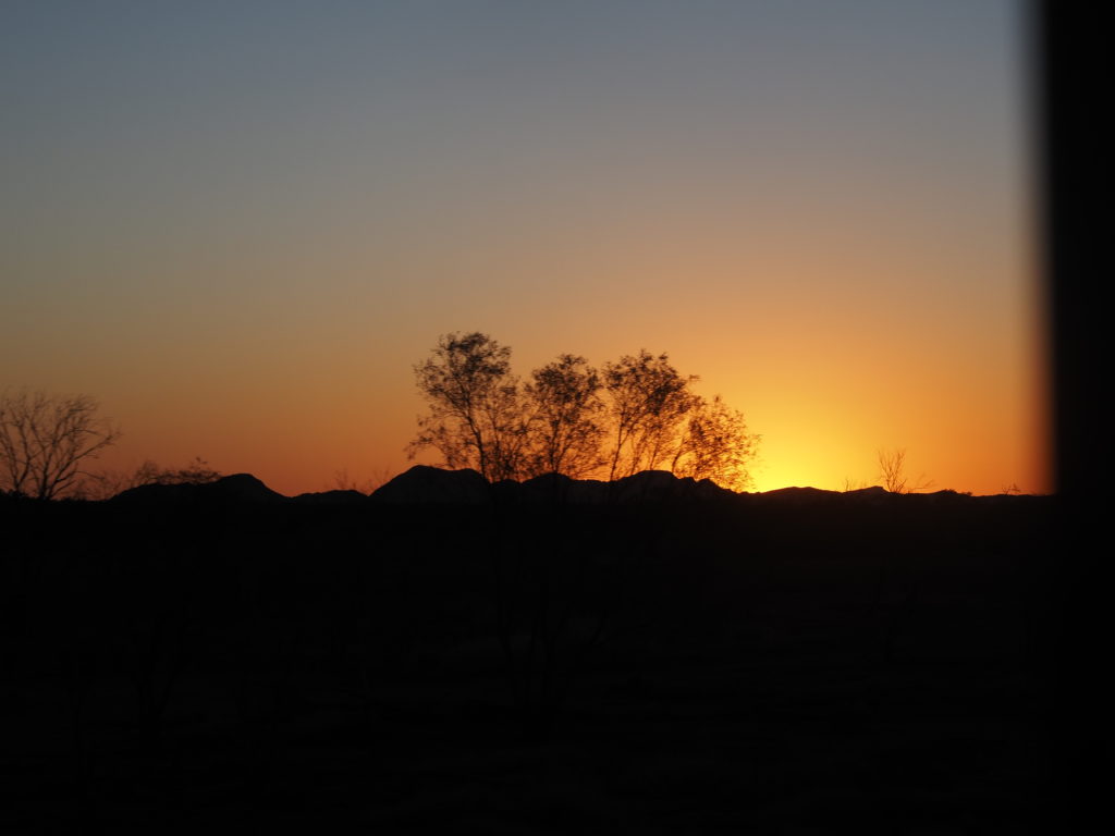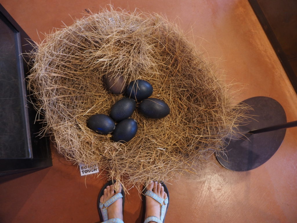 Was wir auch nicht viel sehen sind Tiere. Bei unseren ersten Aufenthalten in Australien 1992 und 2002 war das noch anders. Immerhin konnten wir einen kurzen Blick auf einen Dingo erhaschen. Dieser Fuchsgroße Wildhund ist seit 4000 Jahren in Australien endemisch und ist sandfarben wie das Spinnifexgras. Emus? Fehlanzeige, nur die Eier im Visitorcenter, aus denen wohl kein kleiner Emu mehr schlüpfen wird (re.Bild). Aber es gibt schon noch Kängurus. Die kleineren ca. 1 Meter großen sehen wir tot am Straßenrand. Die werden v.a. nachts von den Autos angefahren. Auf dem Weg raus aus dem Karijini NP mussten wir leider wieder in die Nacht hinein fahren. Die Gegend ist so verlassen, dass es meist nur alle 250 km eine Tankstelle mit einem sog. Roadhouse gibt. Dort ist dann ein Campingplatz mit Duschen angeschlossen.