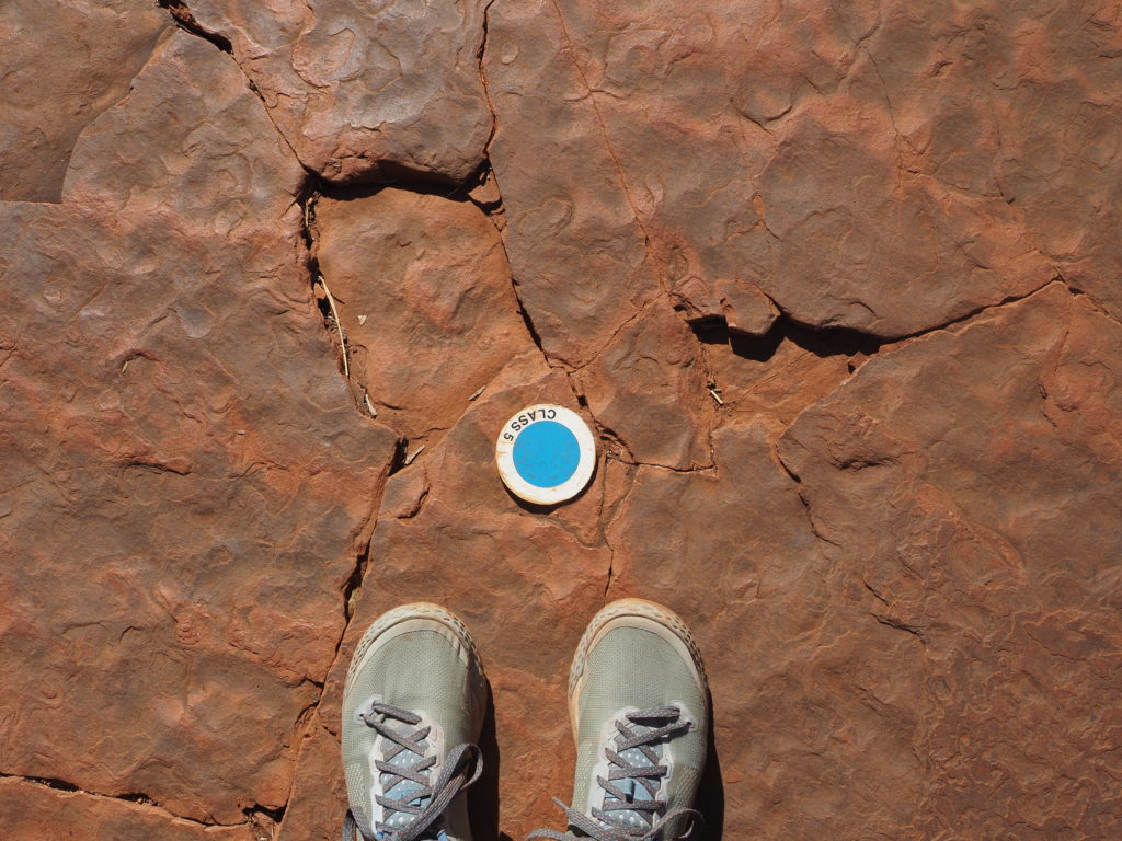 Von der Küste aus sind wir 500 km wieder ins Landesinnere gefahren und auf eine Hochebene, was in Australien bedeutet, dass wir ca. 500 Meter hoch gefahren sind. Das Plateau schaut erstmal aus wie alles hier: Busch, Bäume, braunes Spinnefexgras. Aber dazwischen stecken gut verborgen unzählige Schluchten. Viele davon führen Wasser. Die Wanderwege werden nach Schwierigkeitsklassen eingeteilt: Klasse 5 (s.re.Bild) ist die höchste Schwierigkeitsstufe (in Australien :-))
