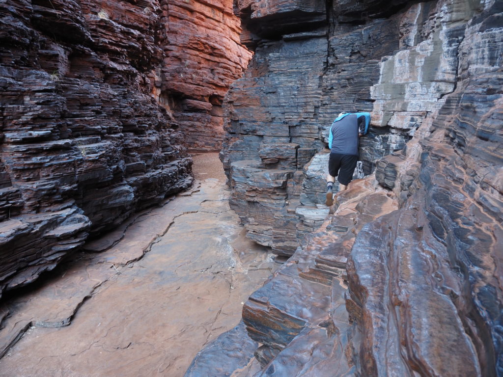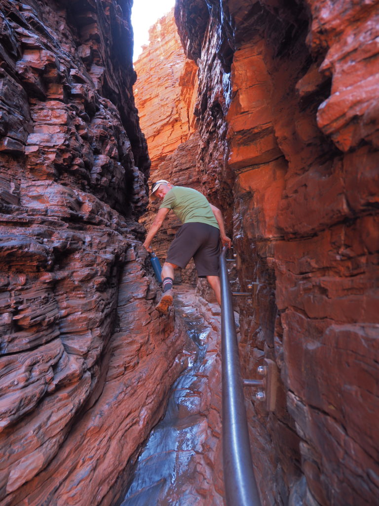 Nächste Wanderung: Weano Gorge mit dem Handrail Pool. Der heißt so, weil man sich zum Pool an einer Stange entlang nach unten hangeln muss. Unsere Wanderungen wurden immer spektakulärer!